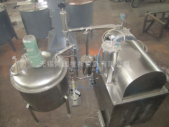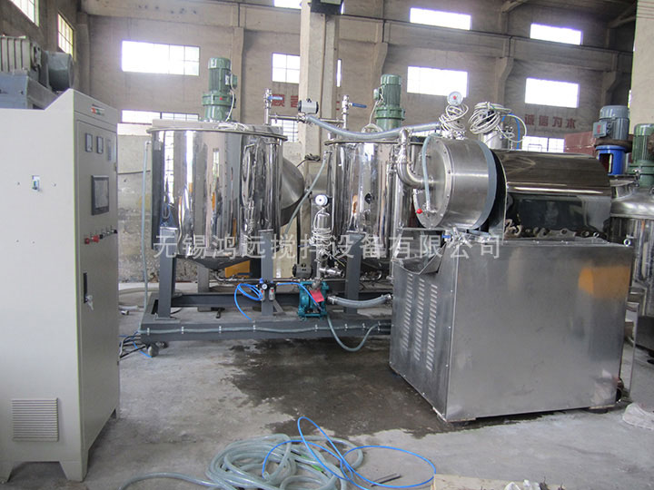 加料泵將預分散的材料送人研磨桶,研磨筒內裝有研磨介質,磨細后的物料經動態(tài)分離器排出,視產品細度不同,可采用單臺連續(xù)或多臺串聯連續(xù)研磨工藝。