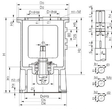 減速機(jī)輸出軸徑d0 減速機(jī)類別代號(hào) D1 D2 D3 n1-M f1