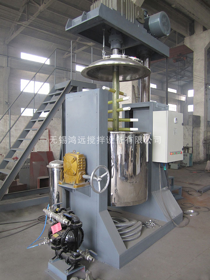 目前,現(xiàn)有的立式攪拌球磨機(jī),主要包括攪拌軸、攪拌棒、機(jī)架、電機(jī)、減速機(jī)、球磨桶等。由于機(jī)架為整體式焊接工件,所以造成用戶使用過程中的諸多不便,而本設(shè)備為分體式結(jié)構(gòu),可電動(dòng)升降、球磨桶翻轉(zhuǎn)采用渦輪蝸桿結(jié)構(gòu),操作簡(jiǎn)單,省時(shí)省工,維修、維護(hù)方便快捷。