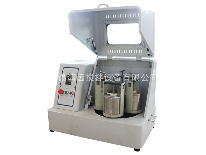 行星式球磨機是在一裝盤上裝有四個球墨罐,當轉盤轉動時,球墨罐隨著轉盤轉動,同時球磨罐在齒輪的帶動下自身由中心軸帶動作行星運動,罐中磨球在高速運動中做不規則運動產生沖擊、剪切、研磨力達到研磨和混合樣品的目的。行星式球磨機能用干、濕兩種方法粉碎和混合粒度不同,材料各異的產品,效率高、效能大、研磨產品小粒度可至0.1微米(即1.0×10-4mm)甚至納米級。